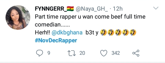This follows a tweet by comedian DKB, describing the former as a NovDec rapper.