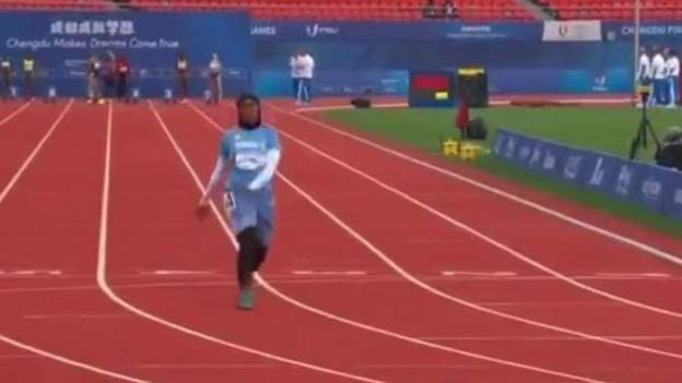 Nasra Abubakar Ali took almost twice as long as the winner to finish the 100m at the World University Games in China.