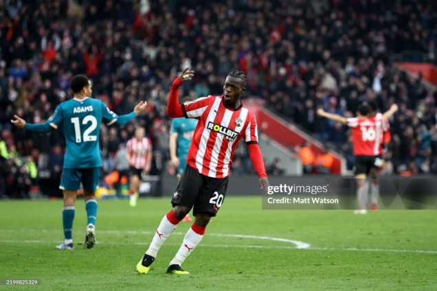 The Ghanaian forward scored in the Saints' 1-3 Premier League defeat to Bournemouth on Saturday, February 15, 2025.