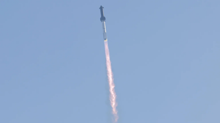 The Starship upper stage separated from its Super Heavy booster nearly four minutes into flight as planned.