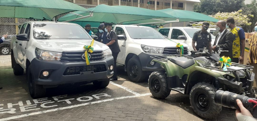 The items include four pick-up vehicles, four All- Terrain Vehicles and computer accessories. One of the pick-up vehicles were presented to the Ghana Police Service.