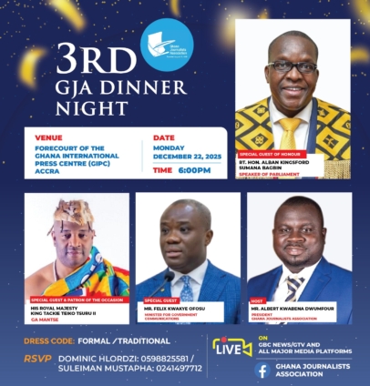 The Speaker of Parliament, Alban Bagbin, and the Ga Mantse, King Tackie Teiko Tsuru II, are set to headline the third edition of the Ghana Journalists Association (GJA) Dinner Night scheduled for Monday, December 22, 2025.