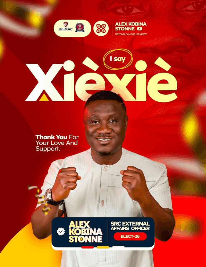 Sports journalist and media personality with Adom Brands of the Multimedia Group Limited, Alex Kobina Stonne, has officially stepped into the world of student leadership after being elected External Affairs Commissioner of the Students’ Representative Council (SRC) at the University of Media, Arts and Communication (UniMAC) in the 2026 SRC elections.