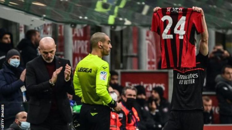 AC Milan move top of Serie A – and pay tribute to injured Kjaer