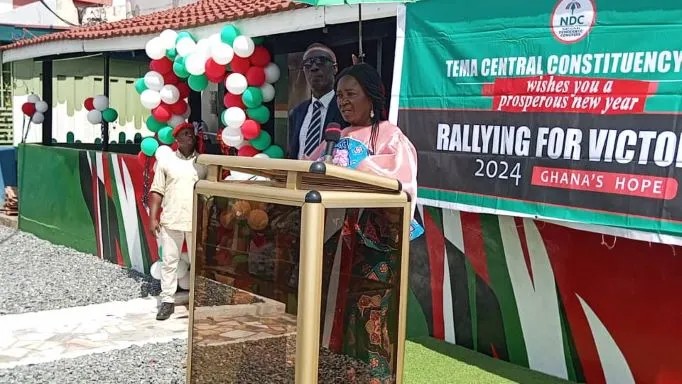Professor Naana Opoku Agyemang and Fiifi Kwetey over the weekend joined members of the Tema Central branch of the NDC to inaugurate an office building for the constituency.