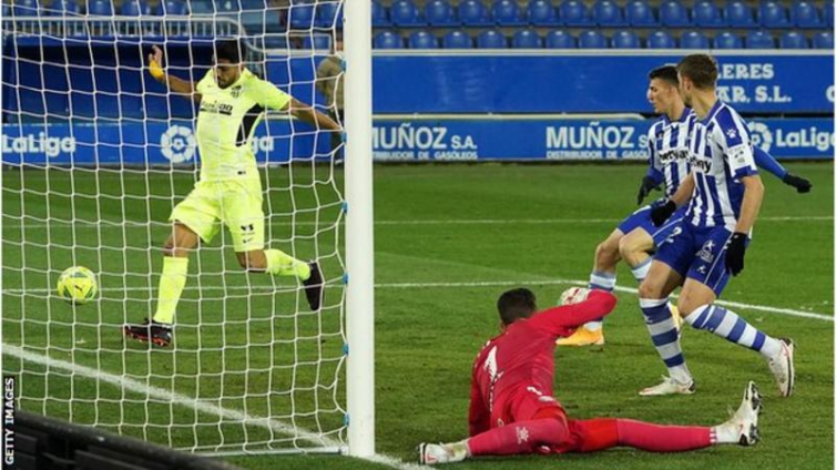 Alaves had Victor Laguardia sent off in the second half but equalised with a Felipe own goal, before Suarez latched on to substitute Joao Felix's cross.