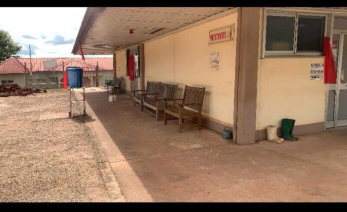 The premises of the Sunyani Regional Hospital mortuary is draped in pieces of red bands, as its mortuary workers join the nationwide strike announced by the Mortuary Workers Association of Ghana (MOWAG).