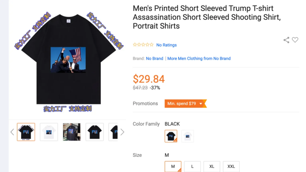 Chinese e-commerce platforms have taken down t-shirts featuring an image of Donald Trump pumping his fist into the air moments after he was shot at.