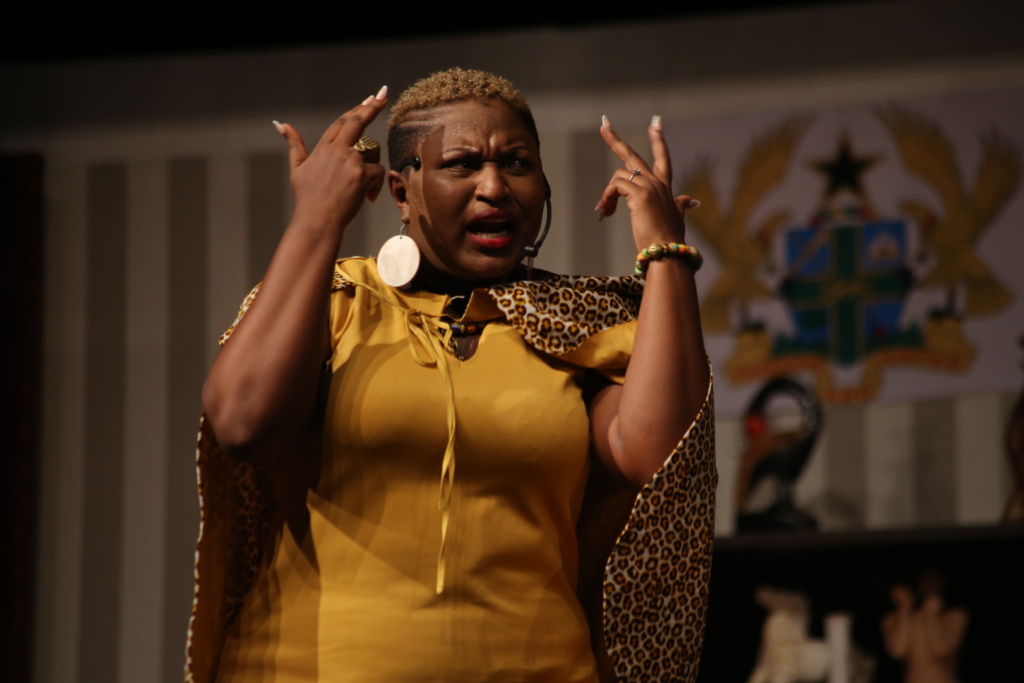 Another major character in the play is Honourable Eileen, the former wife of the President, who is also the Minority Leader in Parliament. She is fierce and has a grudge against Mr President. She is bent on frustrating government business in the House. The character Hon Eileen was played by Sarah Yanumeh Beinpuo.