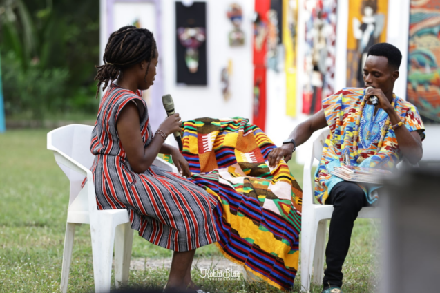 Throughout the discussion, several probing questions led to the emergence of fascinating stories and ideas, revealing the diverse perspectives and experiences of the artists. Earlier in the day, Eli Asem captivated the audience by sharing ancient knowledge and practices of weaving, adding another layer of depth to the Chalewote labs.