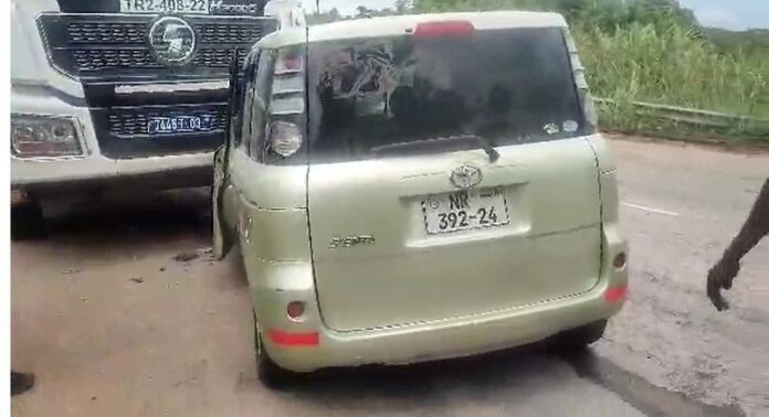 The taxi, traveling from Techiman to Kintampo, collided head-on with the trailer, instantly killing the driver, known as Ogyam, and his female passenger.