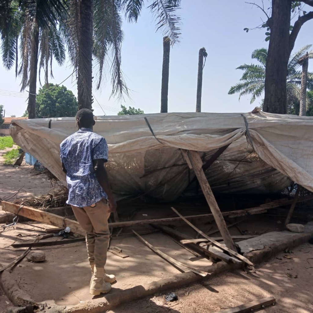 The structure in Aworano was destroyed by the police team. Leftover pieces of a dried substance, also suspected to be Indian hemp, were collected from the site for evidential purposes.