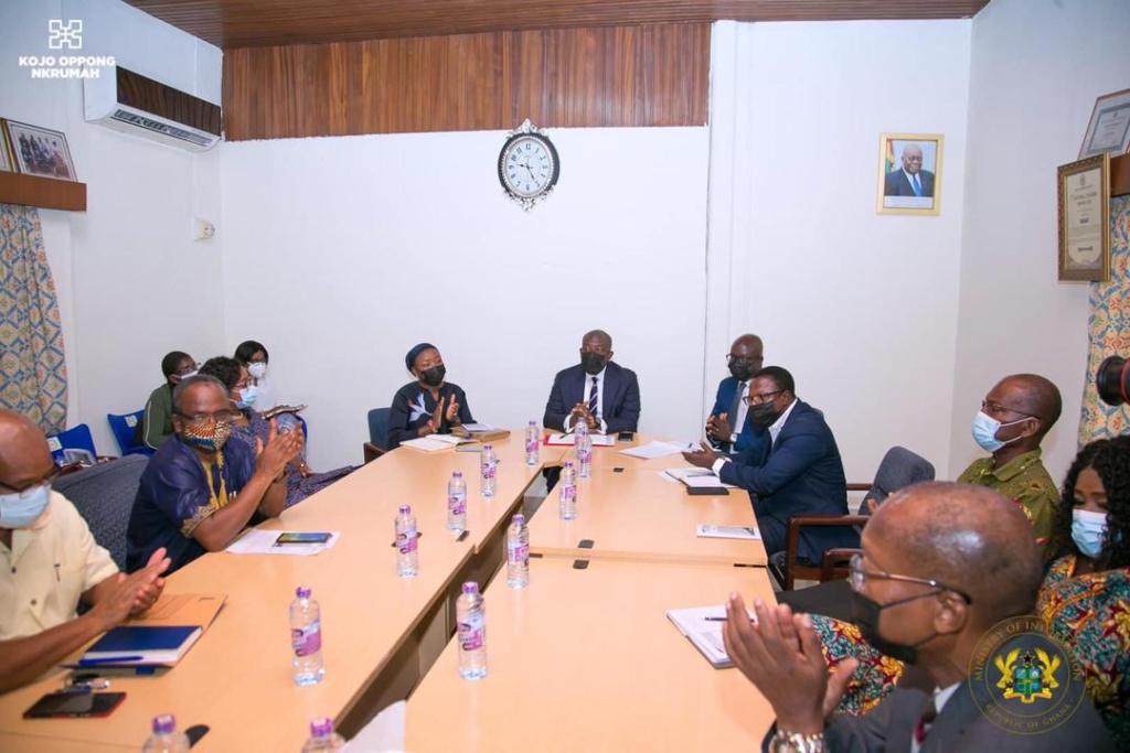 The Minister was accompanied by the Deputy Minister-designate for Information, Fatimatu Abubakar, Chairperson of the Parliamentary Select Committee on Communication and Member of Parliament for Agona West, Cynthia Morrison, Chairman of the National Media Commission (NMC), Yaw Boadu-Ayeboafo and other supporting staff of the Ministry of Information.