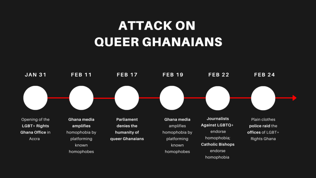 Of these recent attacks, the ransacking of the LGBT+ Rights Ghana offices is perhaps the most well-known and publicized.