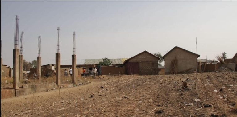 Adinboyi Abugre leads a small group of reporters and health workers down a dusty path to his home—past unfinished cement block structures, close-packed houses, and a wide stretch of earth where his family grows food during the rainy season.