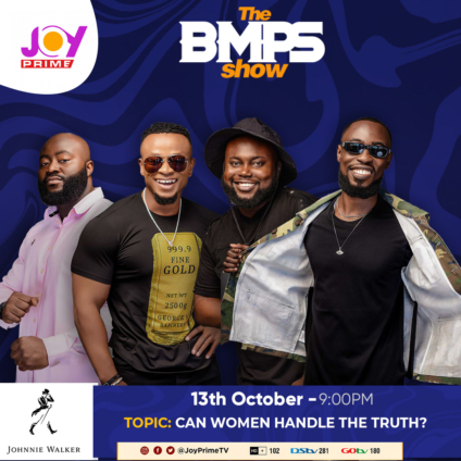 Join the host, Kofi Hayford, and his guys this Friday, October 13 at 9:00 p.m, exclusively on Joy Prime, as they explain their thoughts about the topic. The BMPS show is sponsored by Johnnie Walker.