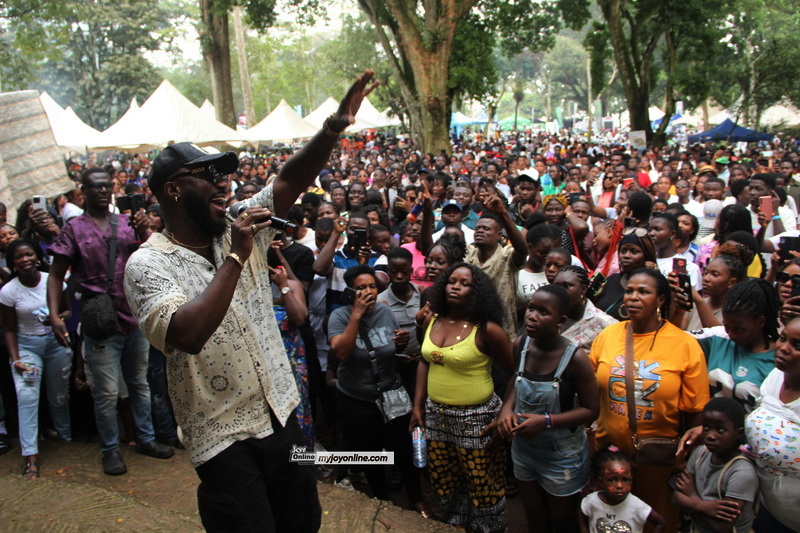 Next, the incomparable Kwabena Kwabena took the microphone, marking his 20 years in music with a performance that touched the soul. His velvety voice filled the air, couples swayed arm-in-arm, families held each other close, and the entire crowd waved in unison – moments of pure magic amid the greenery.