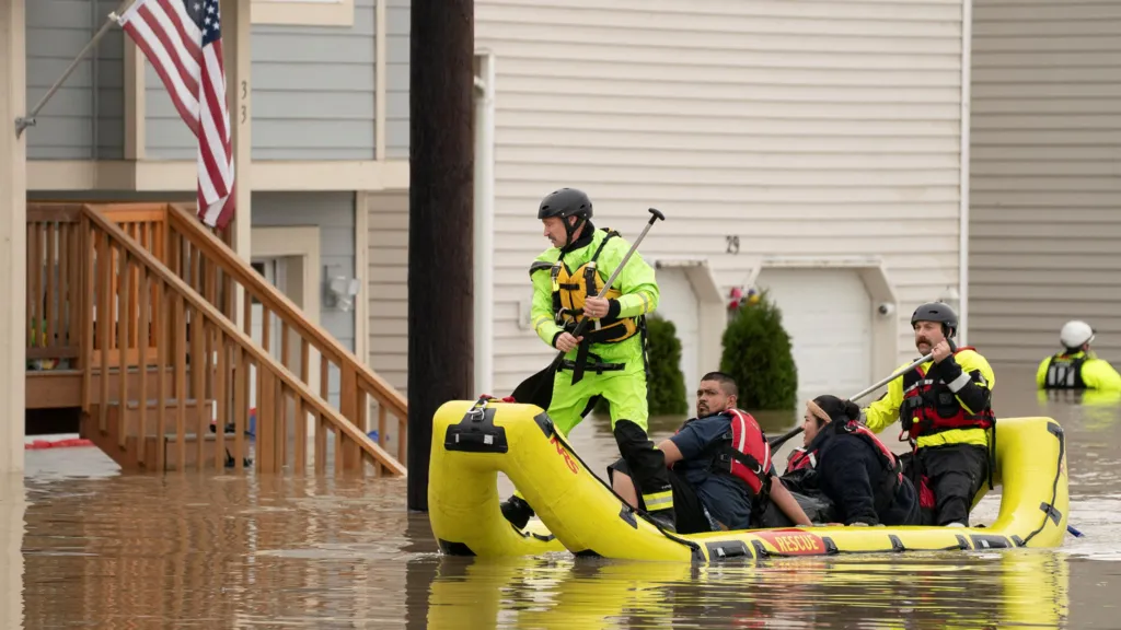 Rescues are taking place around the state, involving inflatable boats and helicopters.