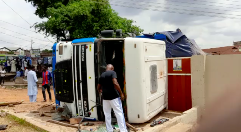 According to JoyNews reporter Saeed Yaqub, a fully loaded articulated vehicle skid off the road and rammed into two houses at Aboabo No.1 Junction in Kumasi.