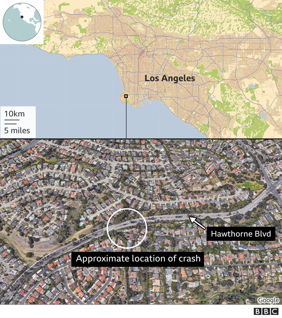 The US golfing champion was driving alone on a Los Angeles downhill stretch of road known for crashes.