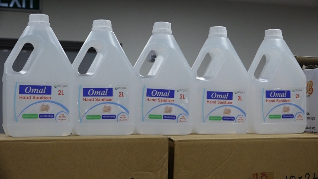 Boxes of Omal hand sanitizer and hand gloves were also handed to the Ministry.