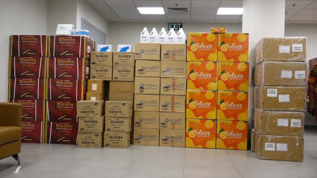 The products donated included immune-boosting drugs such as Tofcee, and Zincvite manufactured by Entrance Pharmaceuticals and Research Centre, also a member of the Tobinco Group.