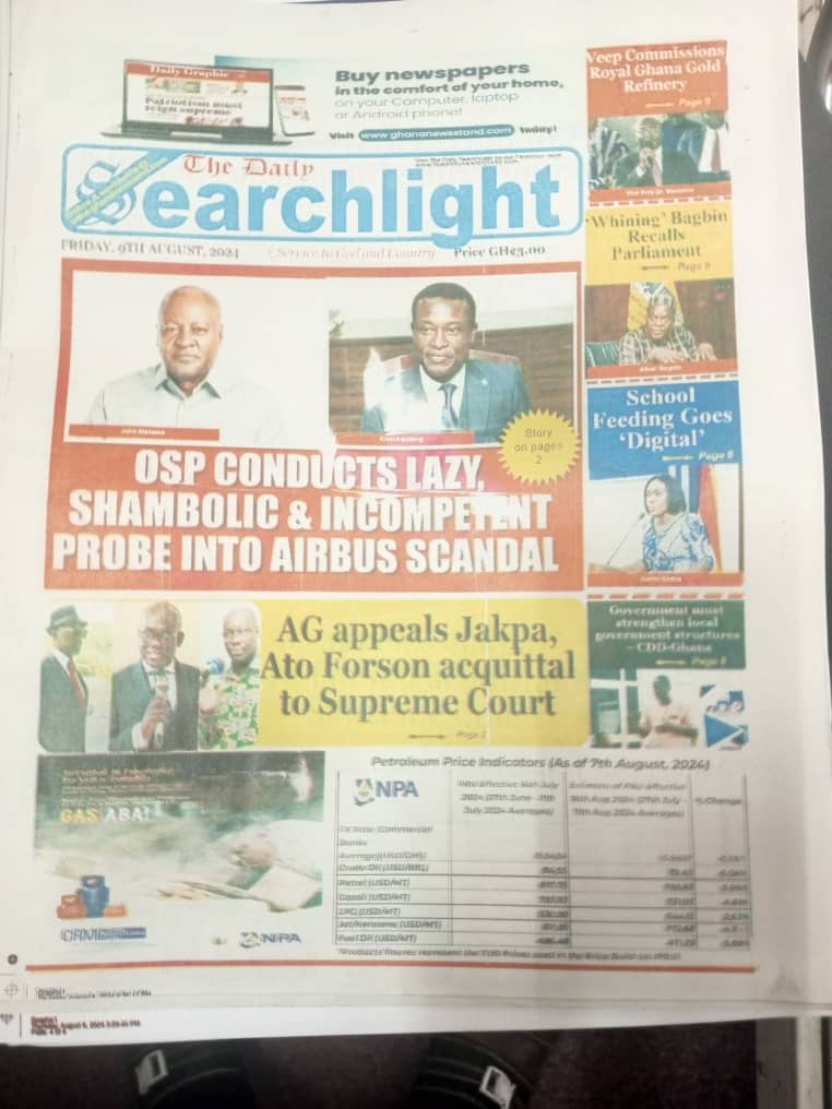 Myjoyonline.com brings you the front pages of the various newspapers across the country.