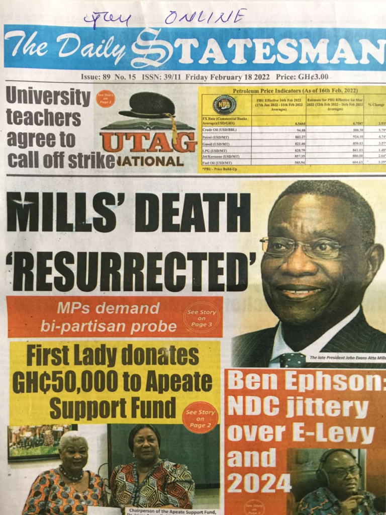 - Mills' death 'resurrected', MPs demand bi-partisan probe