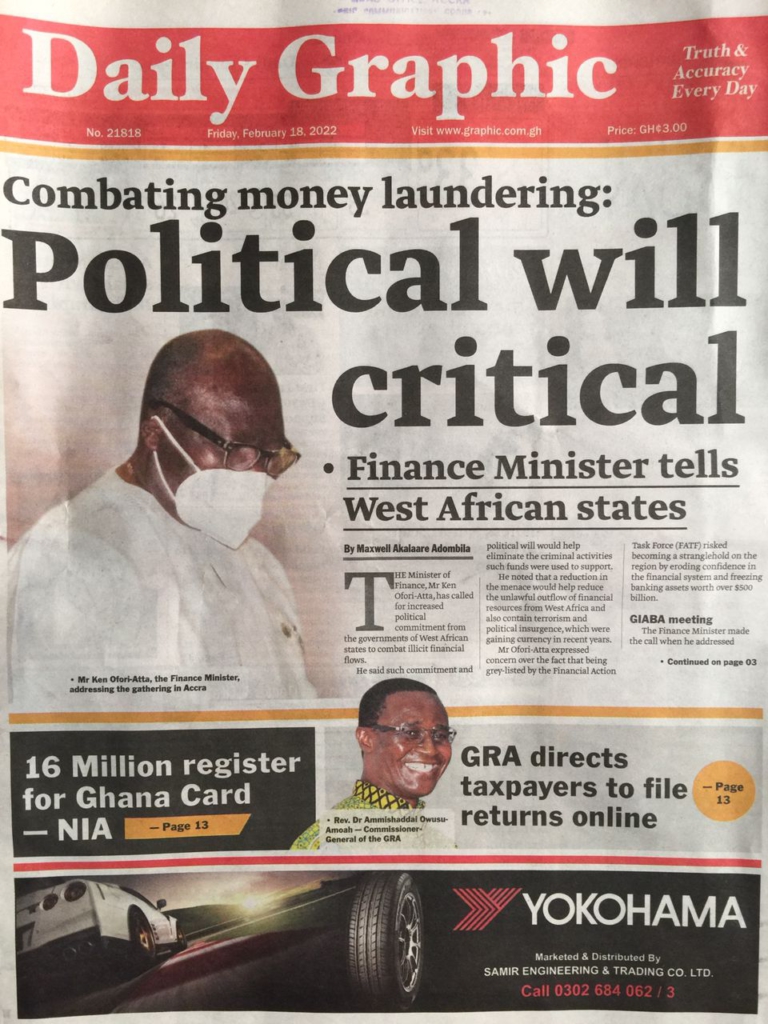 - Combating money laundering: Political will critical - Finance Minister tells West African states
