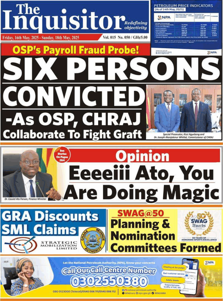 Myjoyonline.com brings you the front pages of the various newspapers across the country.