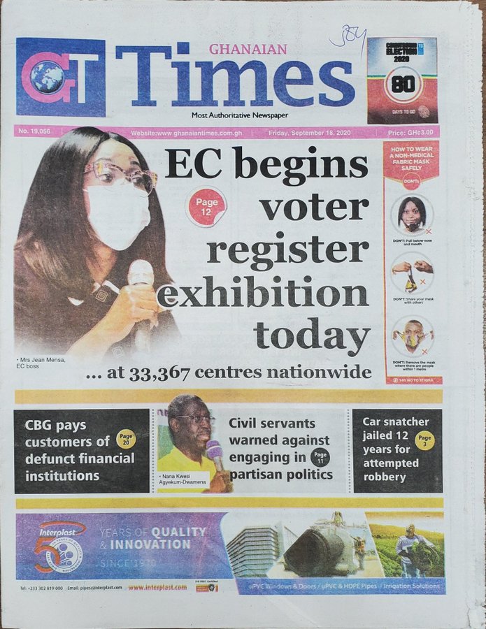 *EC begins voter register exhibition today at 33,367 centres nationwide.