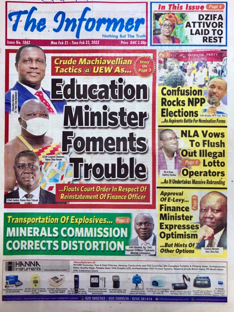 - Crude Machiavellian tactics at UEW as Education Minister foments trouble