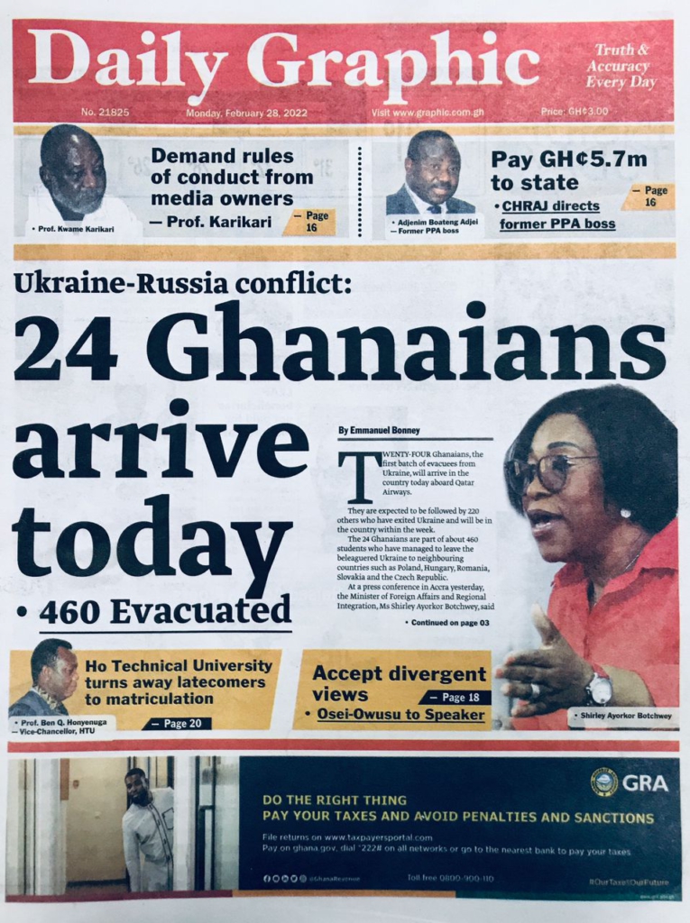 - Ukraine-Russia conflict: 24 Ghanaians arrive today - 460 evacuated