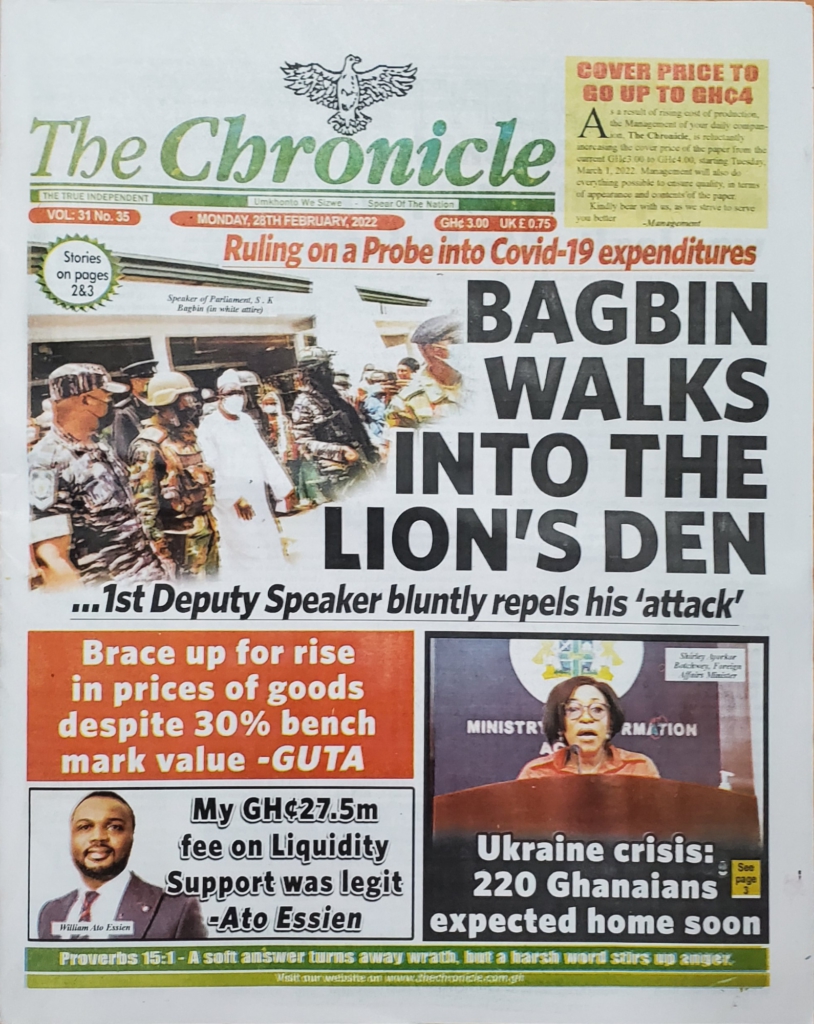 - Ruling on a probe into Covid-19 expenditures: Bagbin walks into the lion's den, First Deputy Speaker bluntly repels his 'attack'
