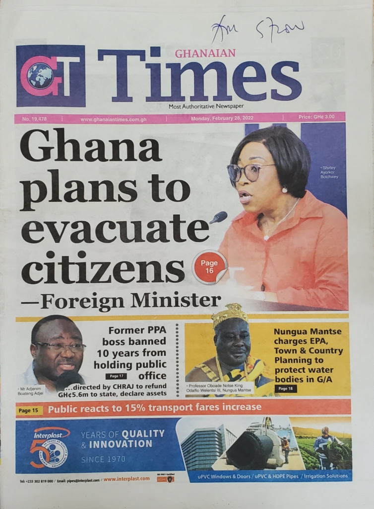 - Ghanaians evacuated from Ukraine, several others taken to safer zones - Government