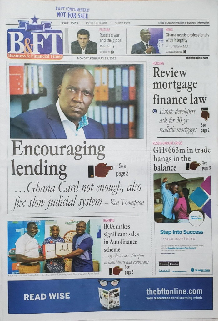 - Encouraging lending: Ghana Card not enough, also fix slow judicial system - Ken Thompson