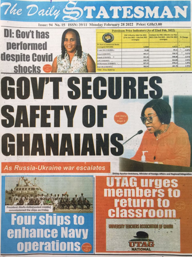 - Government secures safety of Ghanaians as Russia-Ukraine war escalates