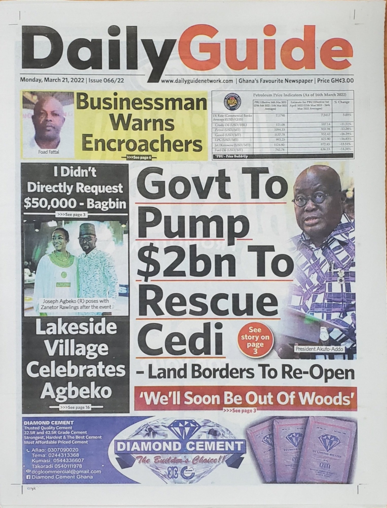 - Government to pump $2bn to rescue cedi, land borders to re-open; 'we'll soon be out of woods'
