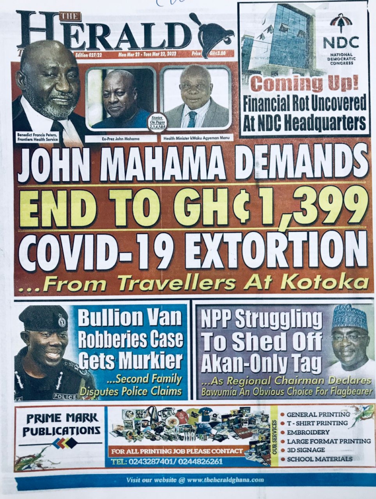 - John Mahama demands to end GH¢1,399 Covid-19 extortion from travellers at Kotoka