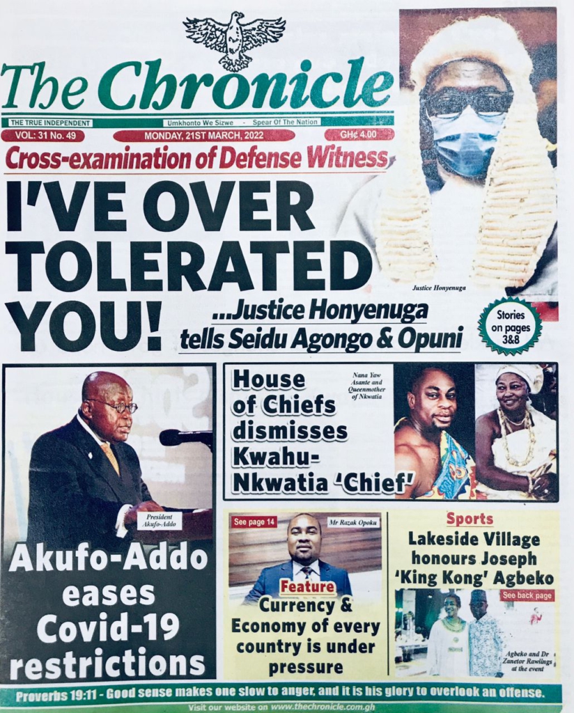 - Cross-examination of defence witness: I've over-tolerated you - Justice Honyenuga tells Seidu Agongo and Opuni