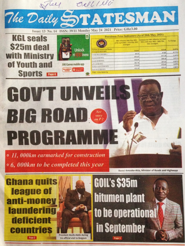 - Gov't complete 6,00km of roads in 2021; GH¢25bn needed for 11,000km