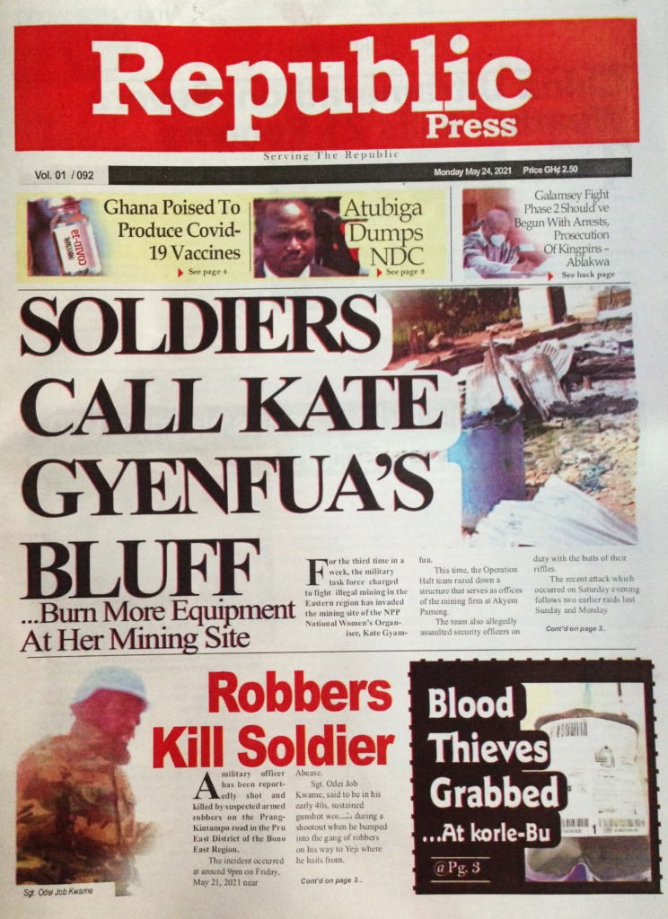 - Soldiers call Kate Gyamfuah's bluff; burn more equipment at her mining site