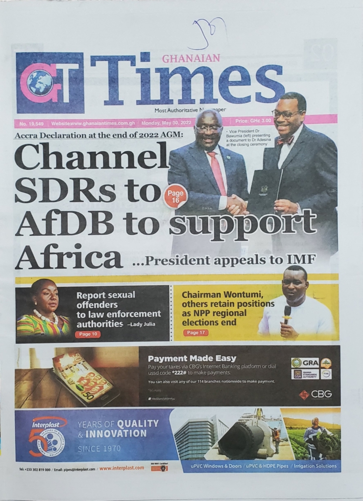 - Accra Declaration at the end of 2022 AGM: Channel SDRs to AfDB to support Africa - President appeals to IMF