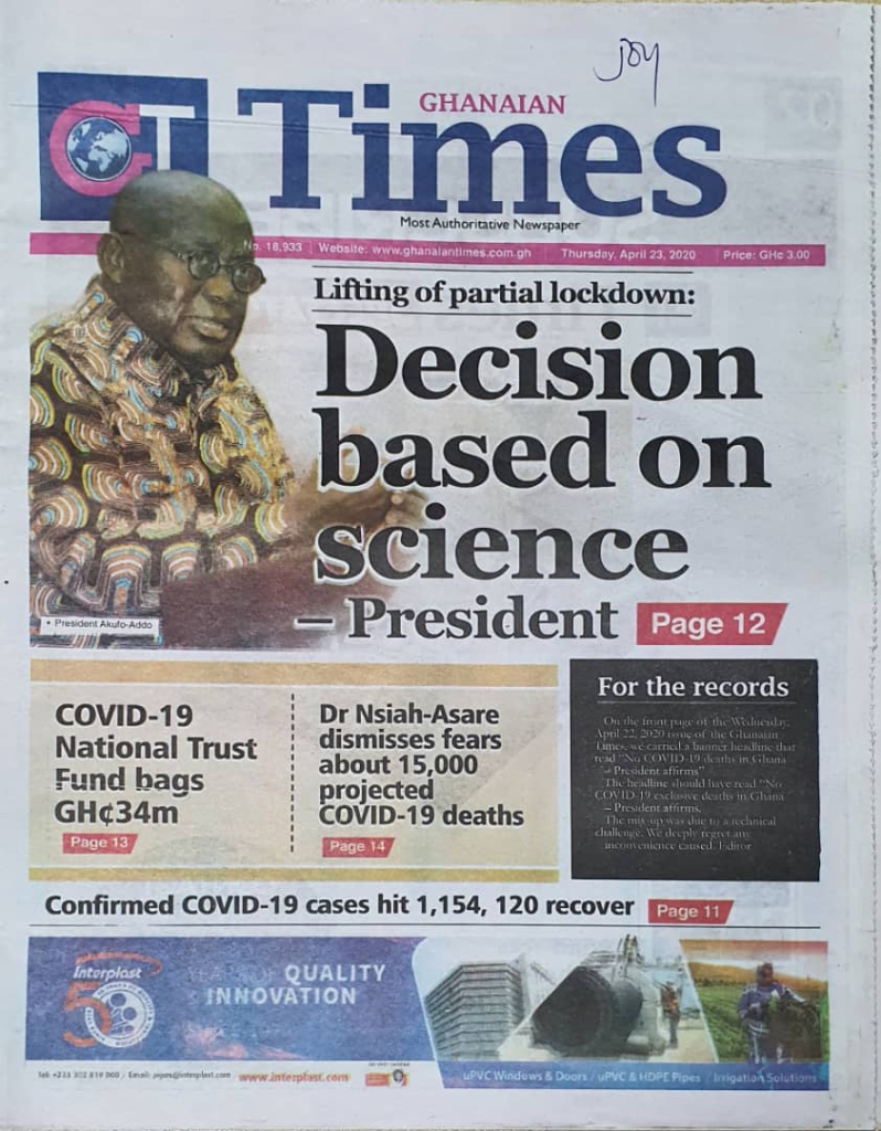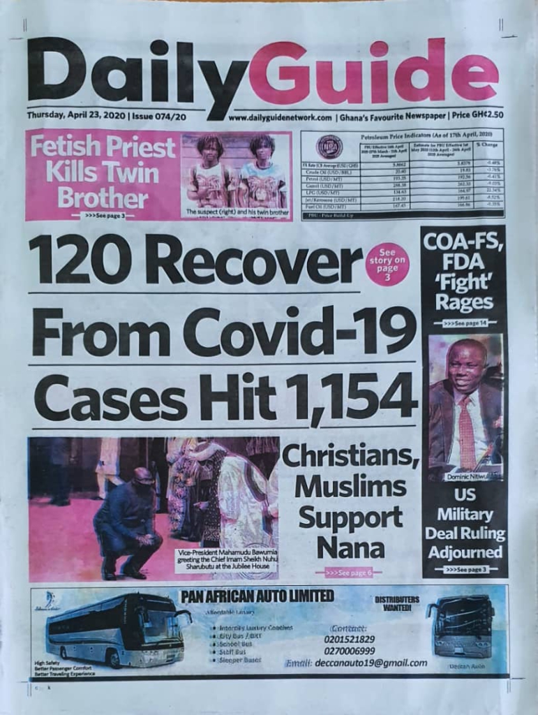 120 recover from Covid-19, cases hit 1,154, Christians, Muslims support Nana