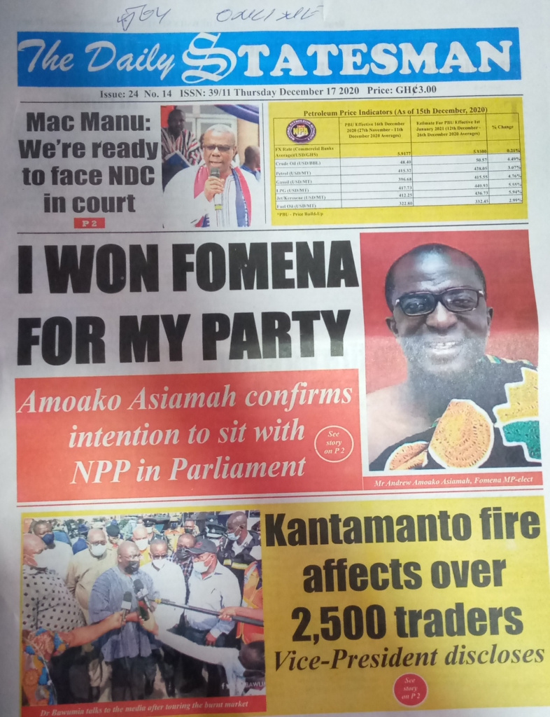 - Fomena NPP declares for NPP - NAM 1 case still under investigation