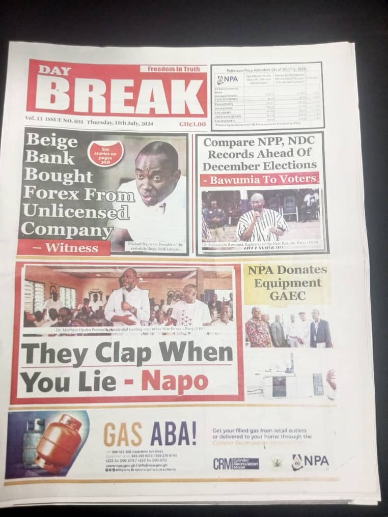 Myjoyonline.com brings you the front pages of the various newspapers across the country.