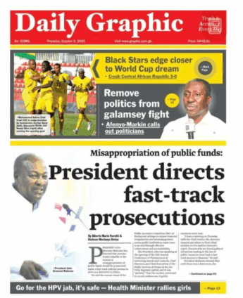 Myjoyonline.com brings you the front pages of the various newspapers across the country