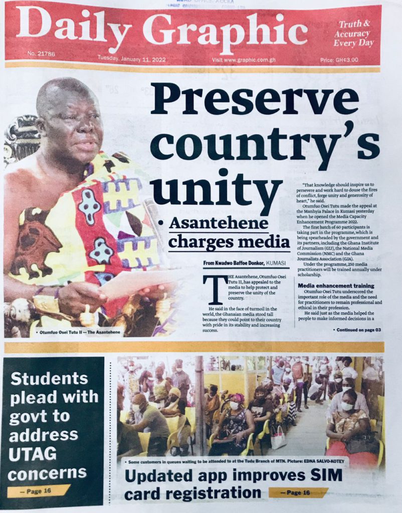 - Promote consensus building to reduce political tension - Asantehene urges media