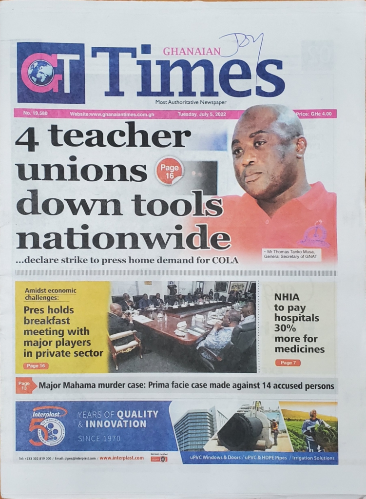 - Teacher Unions on indefinite strike over 20% COLA demand