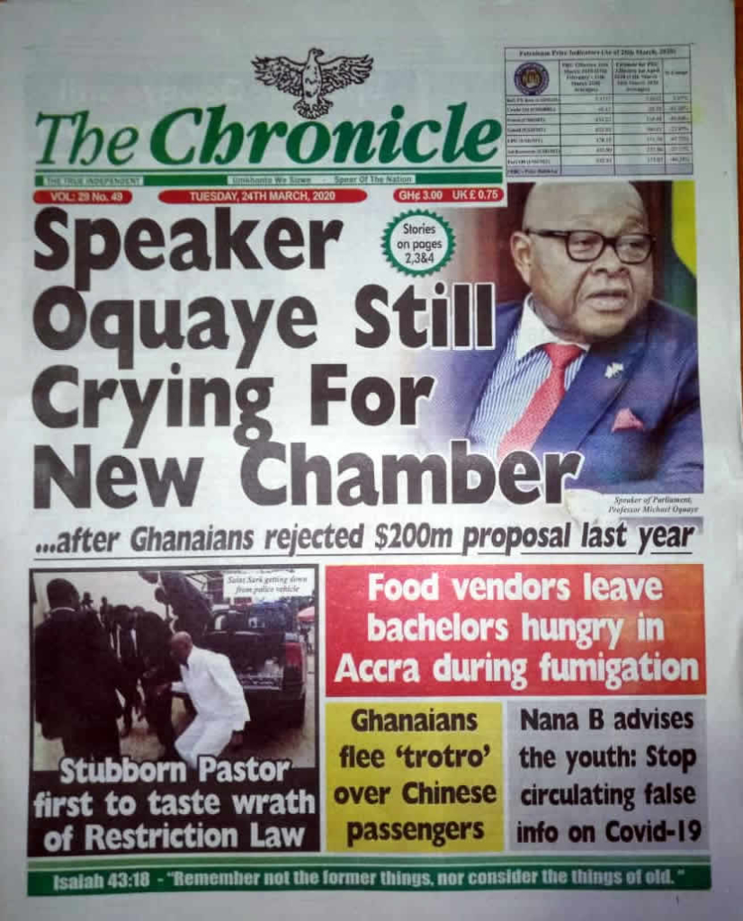 - Speaker Oquaye still crying for a new chamber after Ghanaians reject $200m proposal last year